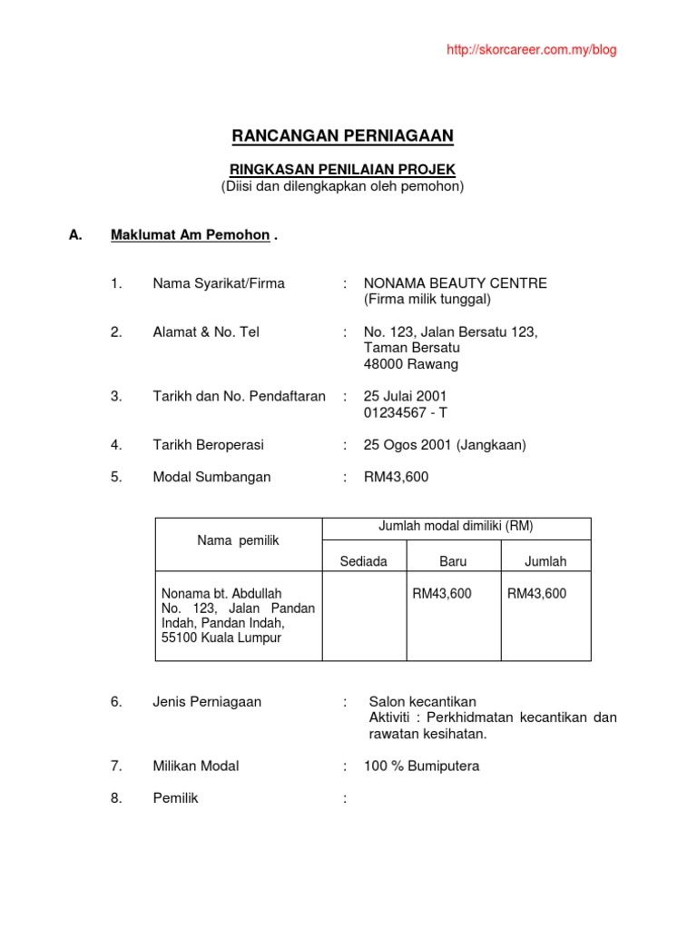 Unduh sebagai PDF TXT atau baca online dari Scribd. Isi kandungan rancangan perniagaan borang permohonan borang berkaitan 1. To this end savings to the tune of 15000000 has been kept aside by the duo of Clement Hawkins and Dora Clayton.